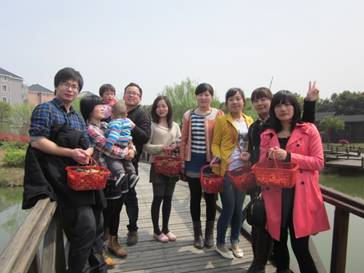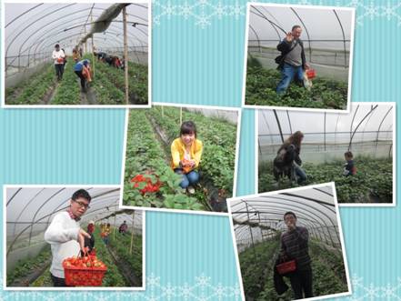 大棚內垅跟垅之間的間隔還是很窄的,不過大家馬上進入“工作狀態”,分散在一條條小間隙上,尋覓紅紅大大的香甜果實,在這里,小孩子就像到了樂園一般,蹦蹦跳跳的好不開心;還有些同事直接入口,甜甜的水嫩口感讓他大呼過癮;更多的同事是“埋頭苦干”,彎下腰一個個摘下放進提籃里,準備帶回家跟家人分享。原來摘草莓也是體力活,想要摘到新鮮的并保鮮,要掌握技術要領:眼尖、掐管、輕拿輕放。走了一圈之后,基本上提籃都被裝滿了,看著自己辛苦勞動的果實,每個人的臉上都洋溢著微笑。