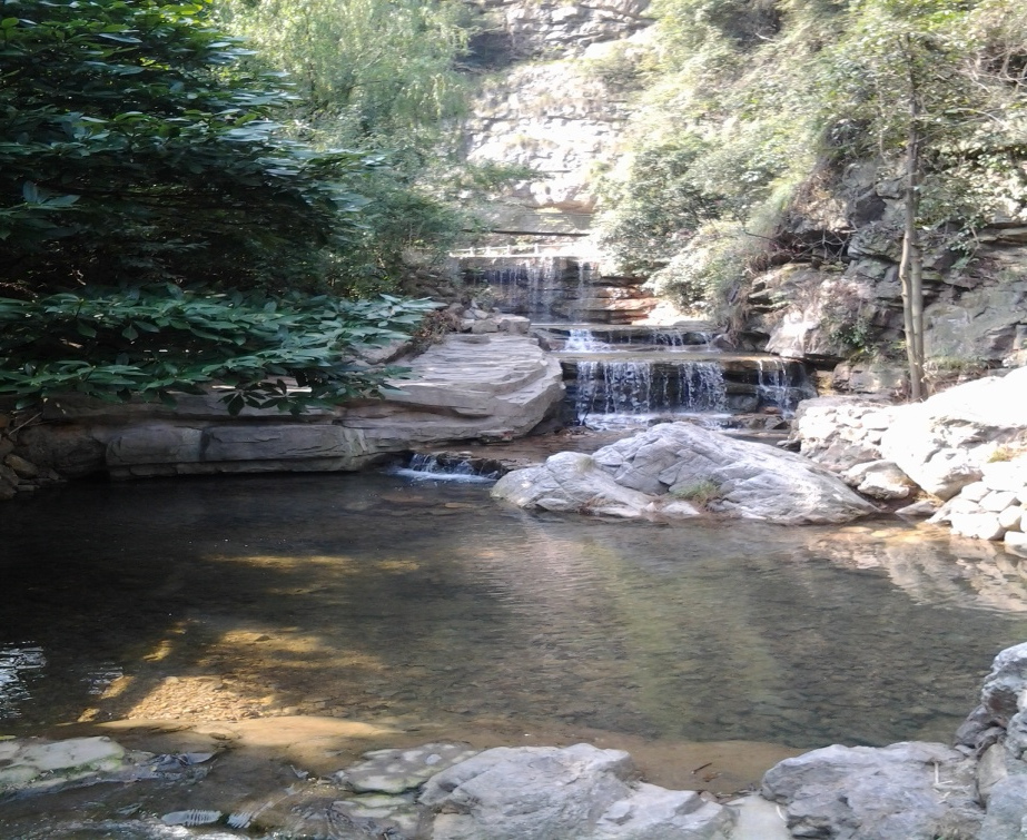 當天秋高氣爽,陽光普照,午飯后,大家背上行裝,徒步旅程開始。入門口有條白龍臥在水中,仰首吐霧向游客示意,在白龍旁邊,我們還看到了彩虹,赤橙黃綠青藍紫,我們像小孩子般的開心數著顏色,欣賞著水中泛起的陣陣漣漪……
