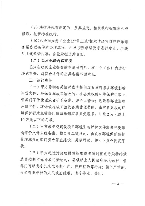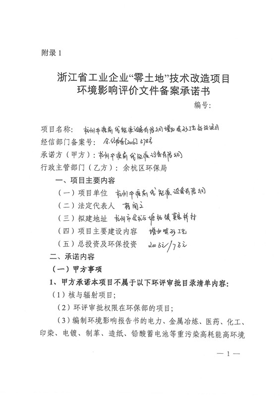 浙江省工業企業“零土地”技術改造項目環境影響評價文件備案承諾
