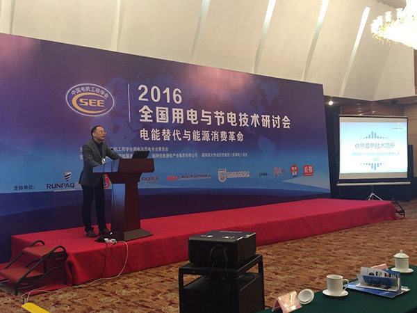 此次會議的主題是:電能替代與能源消費革命。中國工程院院士江億、中國工程院院士顧國彪以及多個國家部委的專家學者在論壇上發言,對于電能替代化石能源等領域的可行性和經濟性等方面作了廣泛深入地研討。RUNPAQ源牌集團杭州華源前線能源設備有限公司總經理徐國富應邀參會并作主旨演講。