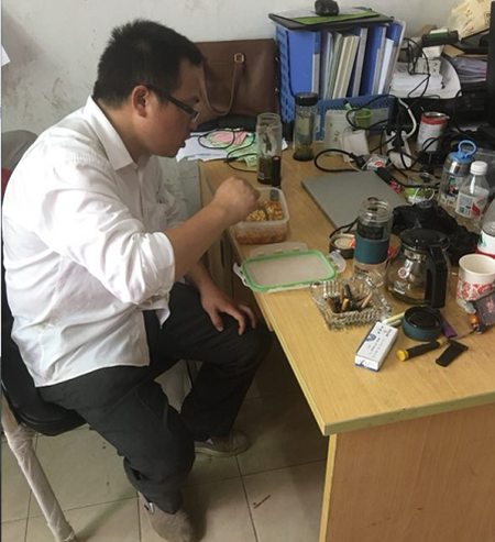 就有這么香,這是有秘方的。這位眼鏡兄弟,是RUNPAQ華源前線鍋爐項目經理吳玉燕,秘方就是連續工作8個小時,沒顧上吃飯!