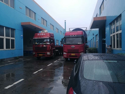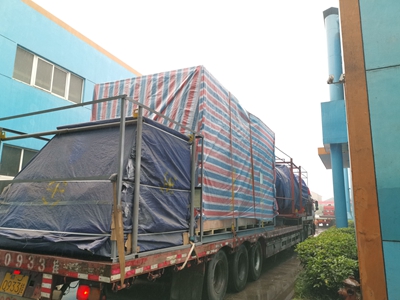 B 在車(chē)間狹長(zhǎng)的通道上,安排裝車(chē),蓋好防雨布: