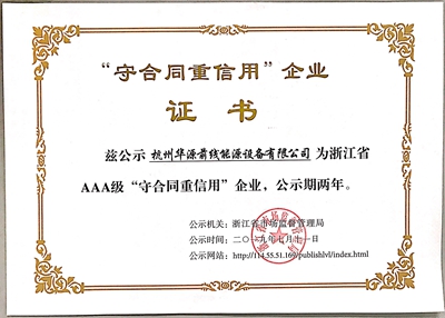 近日,杭州華源前線能源設備有限公司經浙江省工商局審核認定被授予2019年浙江省AAA級“守合同重信用”企業稱號。