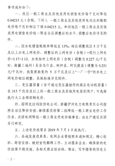 近日,自治區(qū)再次發(fā)文降低新疆一般工商業(yè)及其他類用電價格,此次電價調(diào)整政策從7月1日起執(zhí)行。