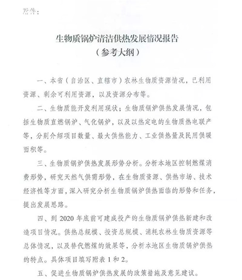 近日,國家能源局下發(fā)《國家能源局綜合司關(guān)于請報送生物質(zhì)鍋爐清潔供熱有關(guān)情況的通知》,要求各地方能源局、發(fā)改委、有關(guān)中央企業(yè)報送生物質(zhì)鍋爐清潔供熱相關(guān)情況。